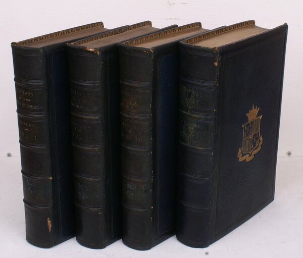 4 vols., 8vo., Second Edition, with 4 engraved frontispieces and a large folding plan, blank preliminaries and plan lightly spotted; handsomely bound in blue full morocco, upper board with triple frame border stopped at corners by rosettes all in blind enclosing arms and motto of the Lodge family elaborately blocked in gilt, lower board with triple frame border stopped at corners by rosettes all in bind enclosing arms of Oxford University elaborately blocked in gilt, backs with five raised bands, second and third compartments lettered and tooled in gilt, all edges gilt, bevelled boards, doublures richly tooled in gilt, marbled endpapers, backstrip lettering faded to near-blind else a remarkably bright, crisp, clean set in a most impressive nineteenth century armorial binding. With the trade ticket of Rivingtons of Oxford in front paste-down of first volume. A PRESENTATION COPY FROM SIR RICHARD LODGE TO THE GIRLS' LIBRARY OF CHRISTS HOSPITAL WITH THE LATTER'S BOOKPLATE ON FRONT PASTE-DOWNS. Motley's classic study was first published in 1860.