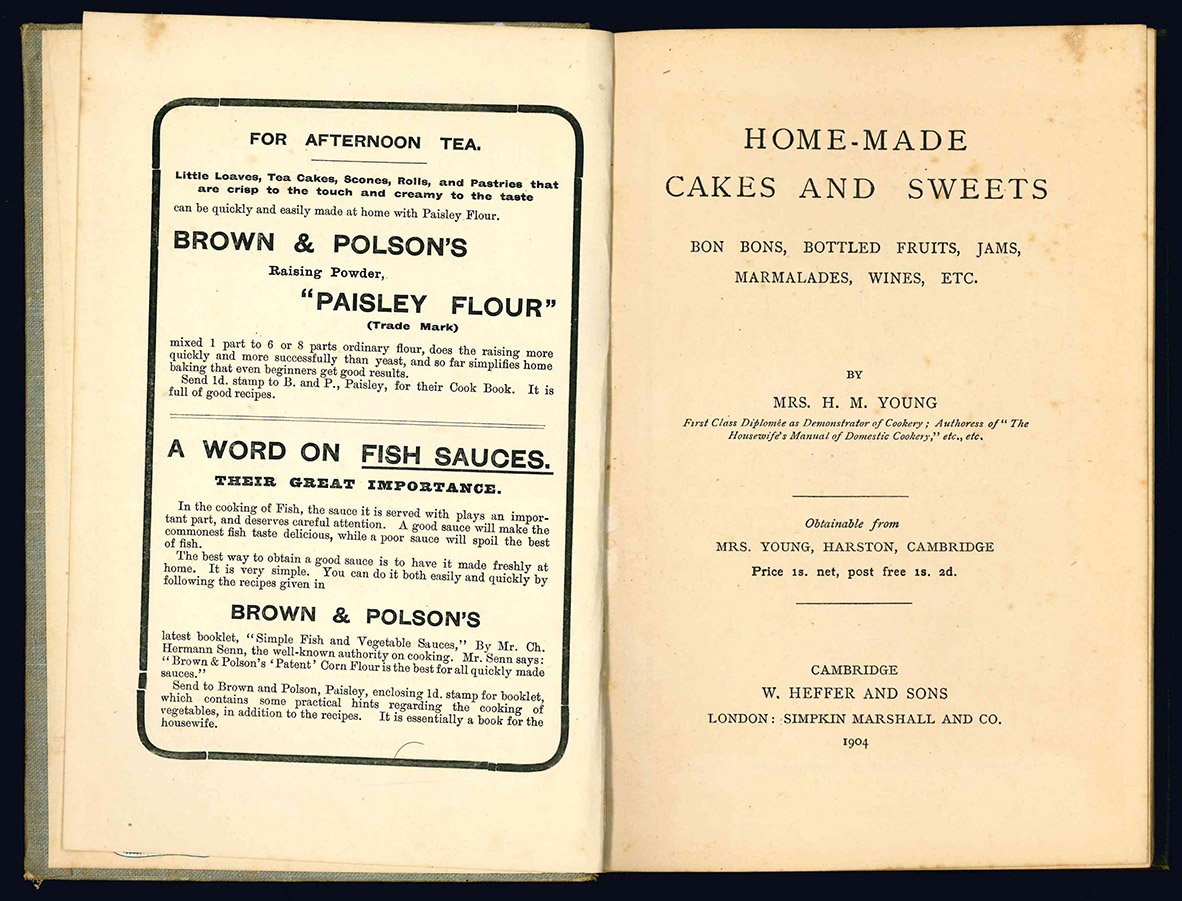 Home-made, cakes and sweets. Bon bons, bottled fruits, jams, marmalades, wines, etc.