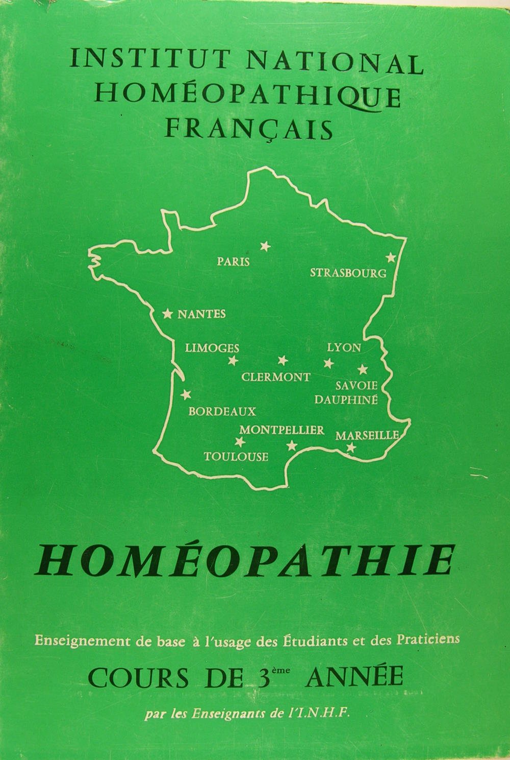 Institut National Homéopathique Français, 1979, grand in/8 broché, 350 pages. Ouvrage à l'usage des étudiants et des praticiens par les enseignants de l'Institut et de ses filiales. Dr Roland Zissu directeur de la publication.