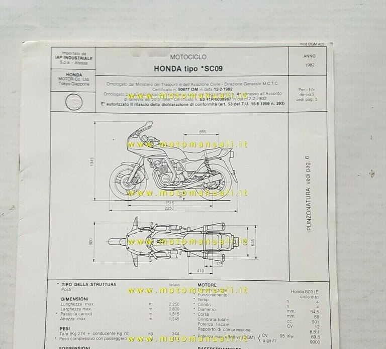 Honda CB 900 F Bol d'Or 1982 scheda omologazione DGM originale Motorizzazione