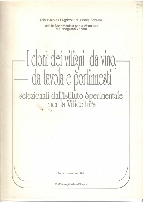 I CLONI DEI VITIGNI DA VINO, DA TAVOLA E PORTINNESTI SELEZIONATI DALL'ISTITUTO SPERIMENTALE PER LA VITICOLTURA