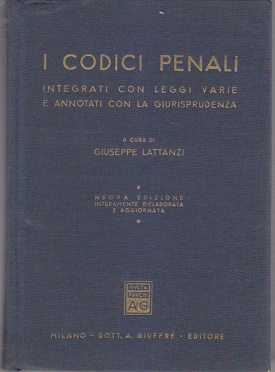 I CODICI PENALI INTEGRATI CON LEGGI VARIE Giuseppe Lattanzi 1963 Giuffrè libro
