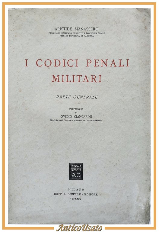 I CODICI PENALI MILITARI Parte generale di Aristide Manassero 1942 Giuffrè Libro