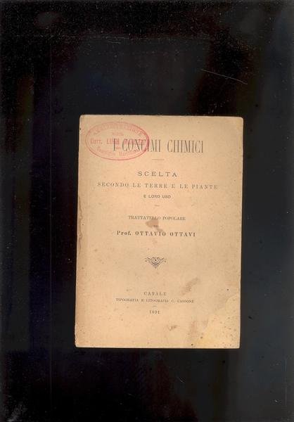 IN 16°, pp.47, COPERTINA EDITORIALE CON TITOLO. TRATTATELLO POPOLARE SUI CONCIMI<BR>CHIMICI, SUO IMPIEGO ED UTILITA' SFATANDO CREDENZE POPOLARI. NELLA SECONDA DI<BR>COPERTINA, VEDUTA PROSPETTICA DELLA FABBRICA DI CONCIMI OTTAVI & MORBELLI IN CASALMONFERRATO, IN LITOGRAFIA. IN ALLEGATO, OPUSCOLO DI 4 pp. CON LE NORME PER L'USO DEI CONCIMI CHIMICI A CURA DI P. FERRARI, FIRENZE 1902.PICCOLO REINTEGRO DI CARTA ALLA PRIMA DI COPERTINA IN BASSO A DESTRA, E, VECCHIO TIMBRO IN ALTO A SINISTRA, ALTRIMENTI OTTIMA CONSERVAZIONE.ID 2576