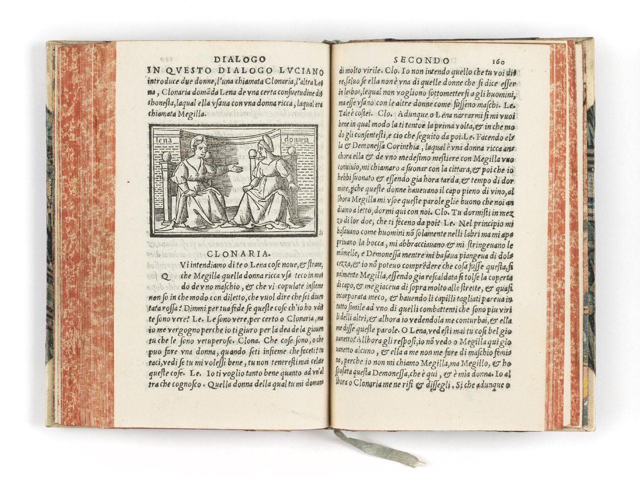 Quarta edizione di questa raccolta di diverse opere di Luciano nella traduzione in volgare di Nicolò Leoniceno dopo le edizioni Zoppino del 1525 e '29 e quella di Bindoni e Pasini del '27.