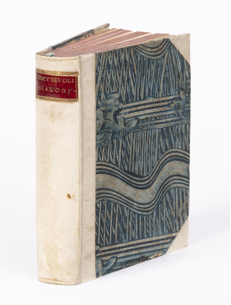 In 8vo (mm. 153x92). Cc. 223, [1]. Segnatura: A-Z8 AA-EE8. Grande marca tipografica a c. EE8r. Colophon a c. EE7v. Frontespizio in elaborata cornice xilografica. Con 29 vignette in legno nel testo. Carattere corsivo. Legatura dell'Ottocento in mezza pelle con punte, tassello con titolo in oro al dorso, risguardi marmorizzati, tagli rossi. Al risguardo libero anteriore nota di possesso manoscritta: “Hen: White Lichfeld Aprilis XII MDCCCXX”. Minimo restauro al margine superiore del frontespizio, qualche lieve fioritura marginale, ma ottima copia.