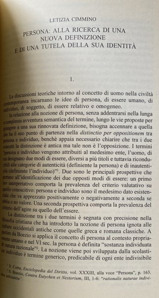 Letizia Cimmino, Persona: alla ricerca di una nuova definizione e di una tutela della sua identità