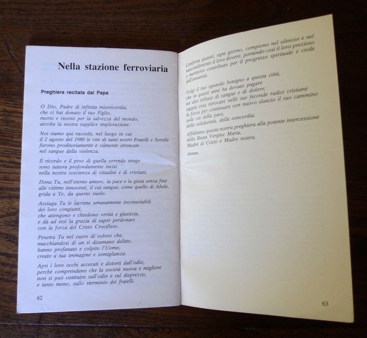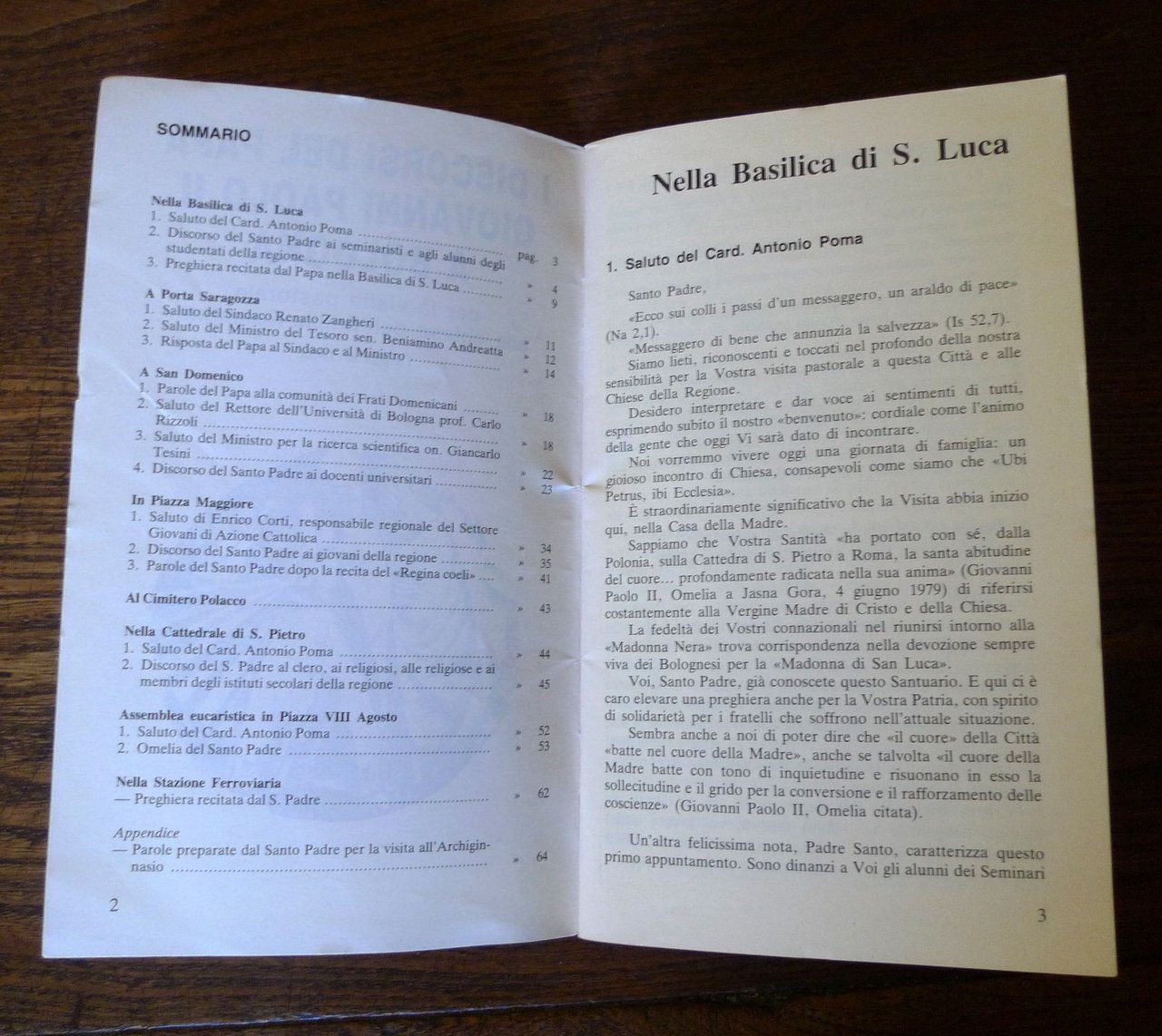 I DISCORSI DEL PAPA GIOVANNI PAOLO IIA BOLOGNAper la visita pastorale alle chiesedell'Emilia-Romagna18 aprile 1982.Supplemento al n.96 del 7 maggio 1982di INSIEME-notizieQuindicinale a cura della Chiesa di Bologna.brossura, rilegatura con punto metallico,18,5x11 cm., pp.64,peso: g.300cod.6630CONDIZIONI DELL'OPUSCOLO: ottime
