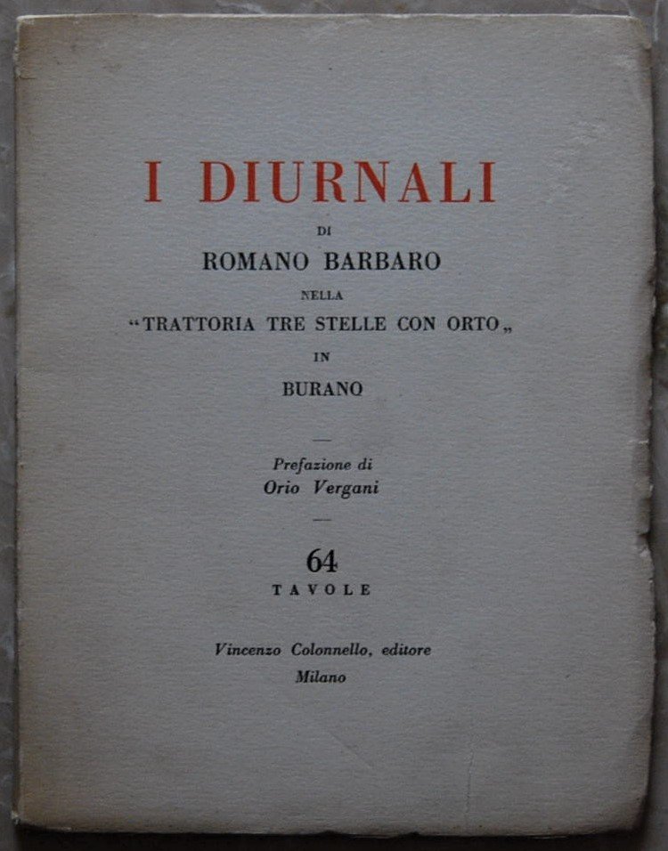 I DIURNALI DI ROMANO BARBARO NELLA TRATTORIA TRE STELLE CON ORTO, IN BURANO. PREFAZIONE DI ORIO VERGANI.