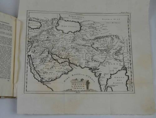 Due volumi legati in uno di cm. 26, pp. (4) xcvi, 205 (3); xxiv, 56. Con due carte geografiche ripiegate nel primo volume. Legatura novecentesca in mezza pergamena. Buona conservazione. Si tratta dei primi due volumi di un'opera che ne consta di ben 12. I presenti sono monograficamente dedicati ai due primi profeti: Osea e Gioele.