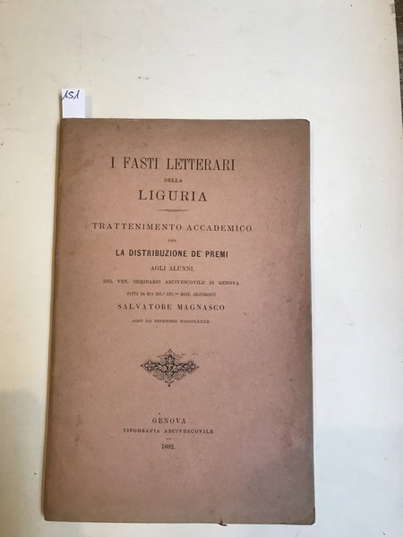 I fasti letterari della Liguria: trattenimento accademico per la distribuzione de' premi agli alunni del ven. seminario arcivescovile di Genova fatta da. Salvatore Magnasco addì.