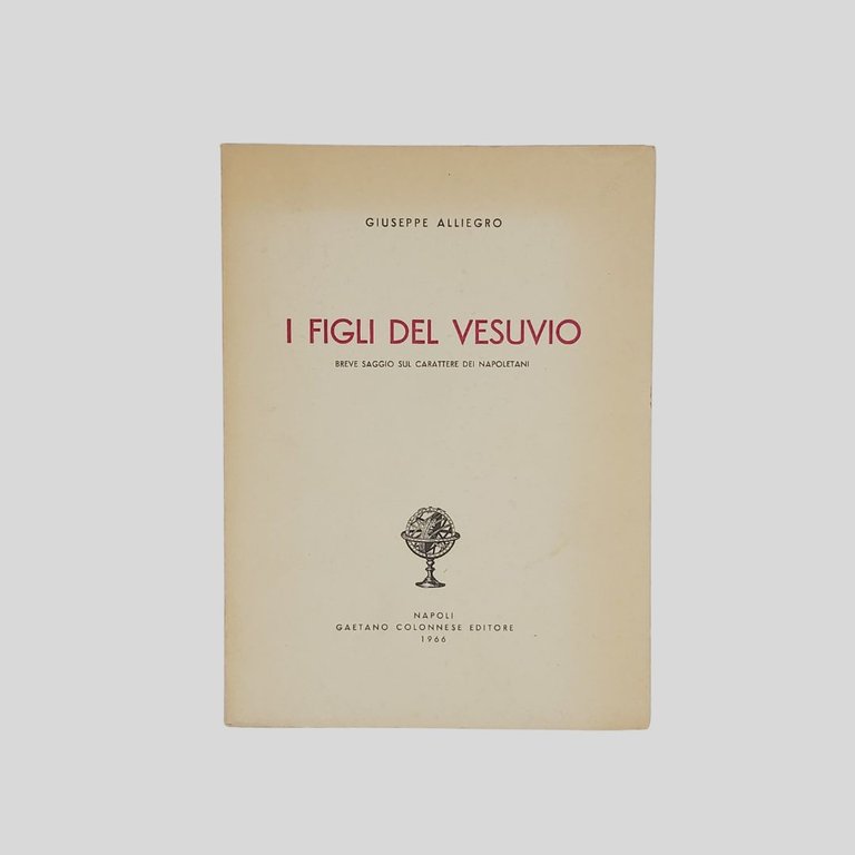 Tip. Agar. In-8° (cm 22), pp. 163 (1). Edizione numerata in 1000 copie (n. 287). Naturali “segni del tempo” alla copertina. Interno in ottimo stato, intonso. Come nuovo. I figli del Vesuvio: il primo libro pubblicato da Gaetano Colonnese. «A migliaia si contano i libri su Napoli. Questo è uno dei pochi che mette a nudo il caratttere dei napoletani»