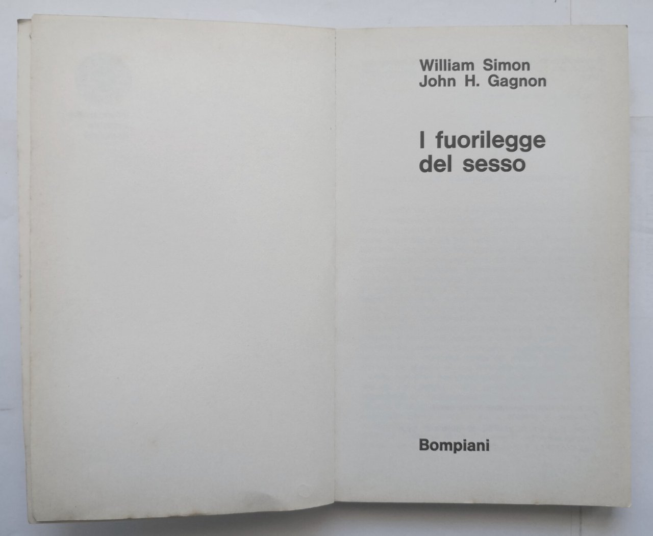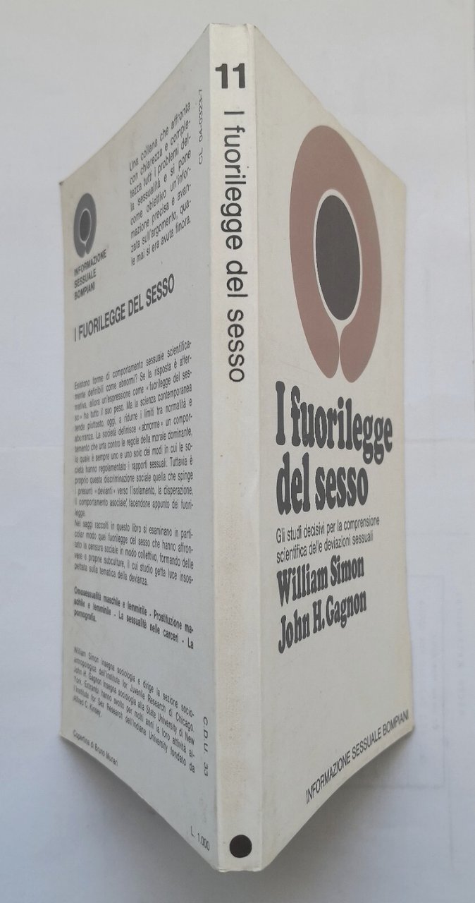 I FUORILEGGE DEL SESSO di Simon e Gagnon 1972 Bompiani Libro studi deviazioni