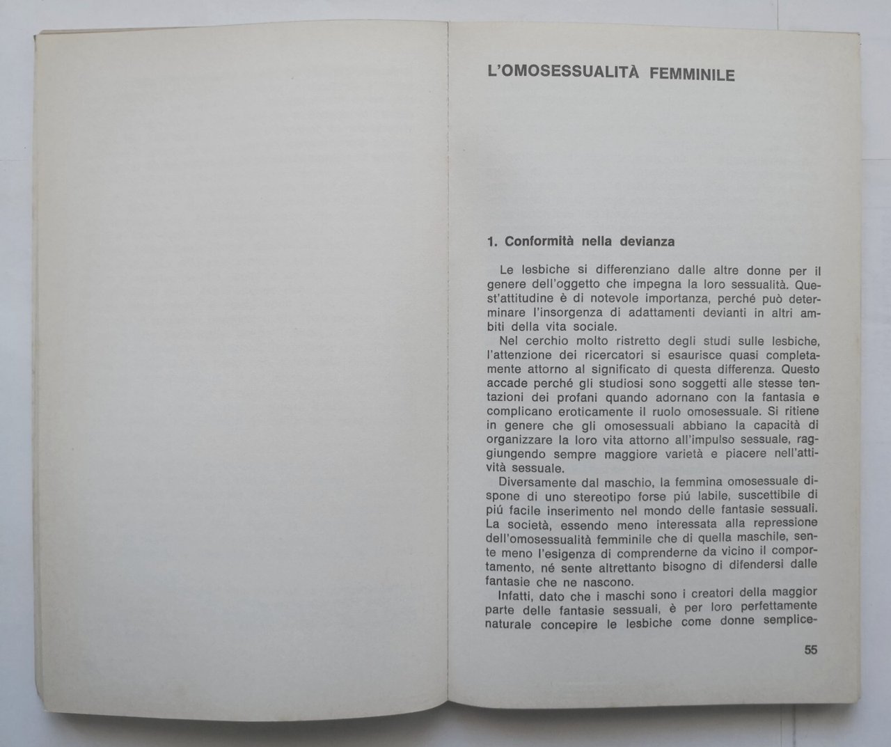 Editore Bompiani, 1972. Collana Informazione sessuale numero 11. 165 pagine. Copertina editoriale in brossura. Stato di conservazione: molto buono (pagine normalmente ingiallite, residuo odore di umido) Libro usato saggistica psicologia omosessualità
