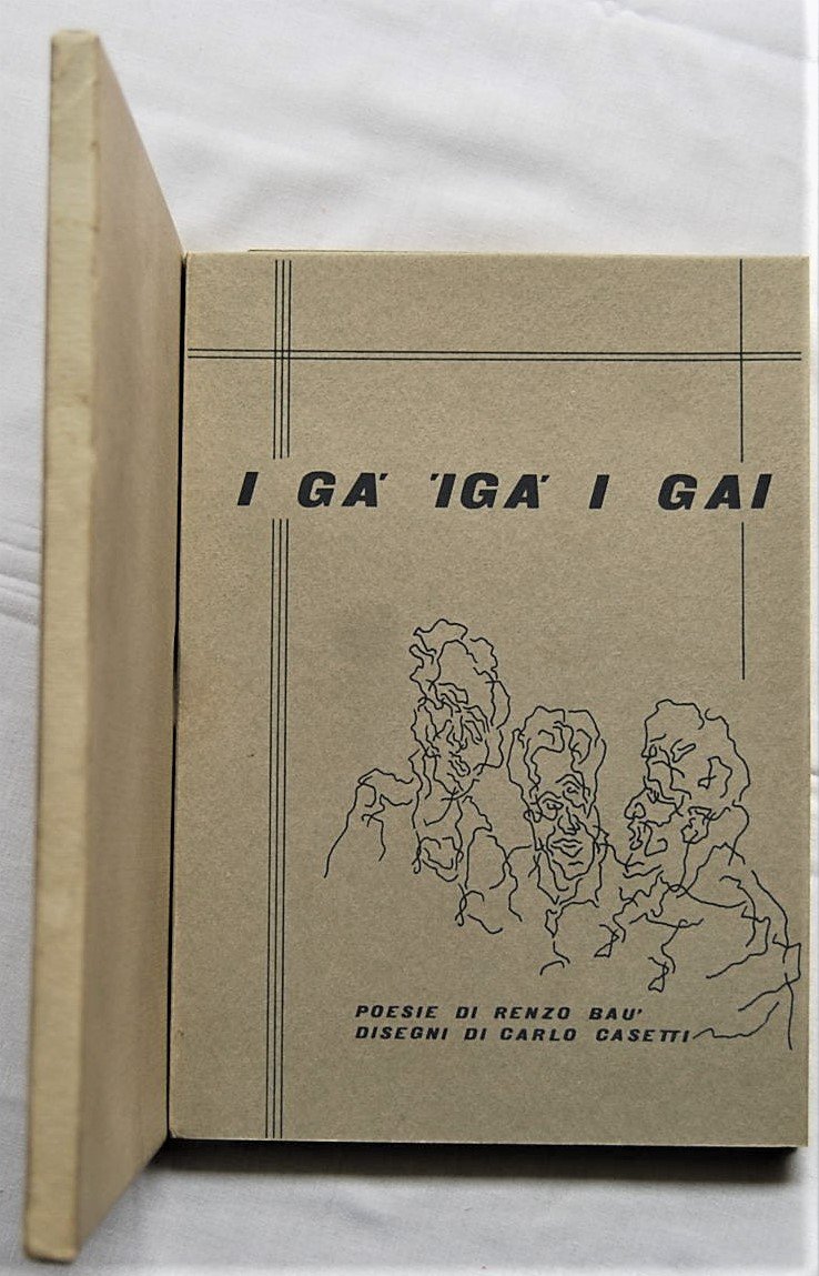 , 1986. In-8, brossura, custodia, pp. 40 circa (non numerate), otto poesie inedite di Renzo Bau', otto disegni originali di Carlo Casetti. Edizione di 300 esemplari numerati e firmati dagli autori. In ottimo stato.