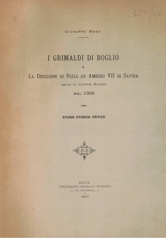 I Grimaldi di Broglio e la dedizione di Nizza ad Amedeo VII di Savoia detto il Conte Rosso. Studio storico critico.