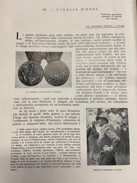 In 8°, p. tela, pp. 364 con numerose ill. , alcune a colori e diversi facsimili di grafia di noti personaggi. Lettere al d. ed al piatto ant., con al campo del medesimo il fascio littorio, in o. Lievi mende alla cop. Interno ottimo stato. Numerose ill.