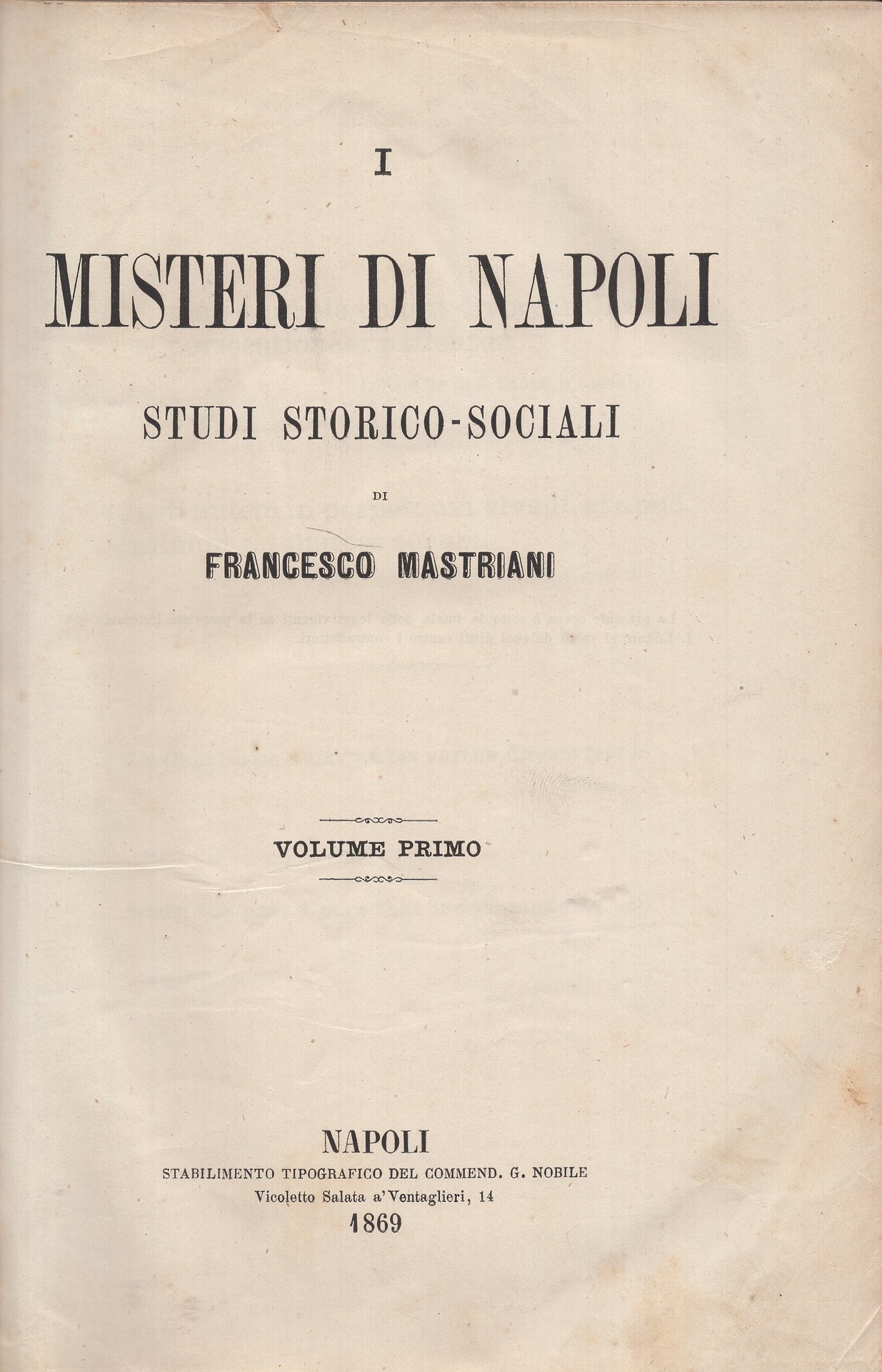Due volumi in un tomo unico entrambi preceduti da un'immagine di F. Tramontano incisa da Eduardo Dalbono che illustra il tresto. Copertina riattaccata con striscia di carta incollata
