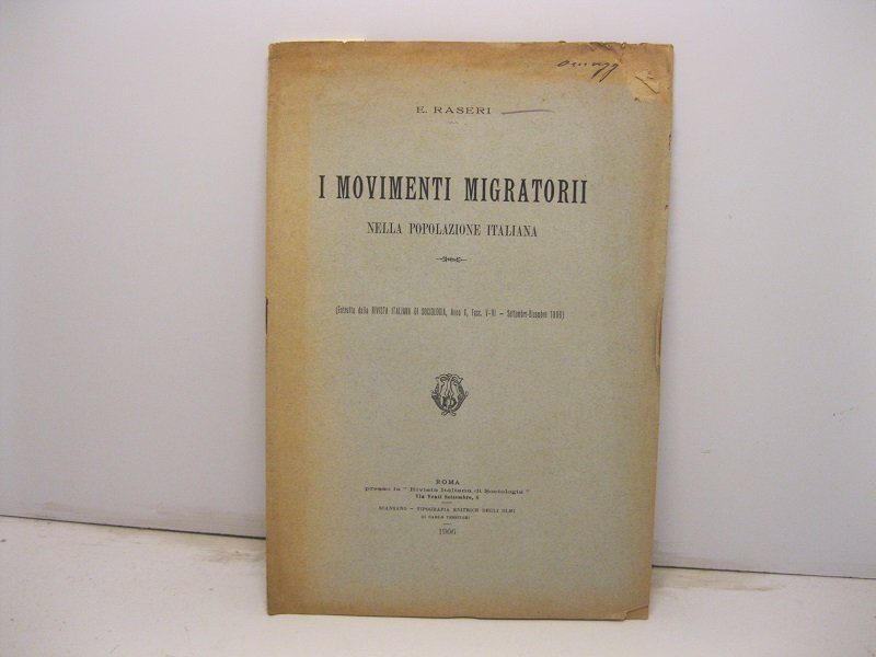 I movimenti migratorii nella popolazione italiana. Estratto dalla rivista italiana di sociologia, anno X, fasc. V-VI, settembre-dicembre 1906