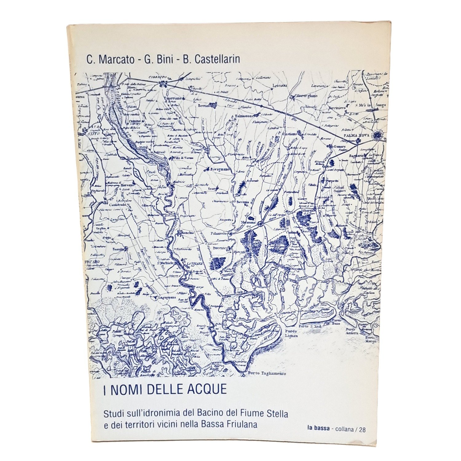 PRIMA EDIZIONE; Studi sull'idronimia del bacino del fiume Stella e dei territori vicini nella Bassa friulana Indagine toponomastica che comprende il settore della bassa friulana compreso fra il fiume Tagliamento, ad ovest, il canale Cormor, ad est, la linea delle risorgive, a nord, e il mare Adriatico, a sud, per una superficie complessiva di quasi 400 kmq, di poco superiore a quella del lago di Garda. Con introduzione di Giuliano Bini, I nomi delle acque (idronimia). Caratteristiche e metodo di studio (Carlo Marcato); Il catalogo delle schede, Gli indici: le principali voci indicanti acque di superficie; forme diverse della documentazione scritta e orale. Le appendici: Le fonti documentario e cartografiche con un prospetto degli idronimi rilevanti su mappe e disegni, antichi e moderni, e un elenco delle più antiche attestazioni documentarie (Benvenuto Castellarin); Le acque della bassa friulana nelle fonti geografiche di età romana (Fabio Perenc); tavole in bianco e nero. Brossura. Pp. 219. Ottime condizioni