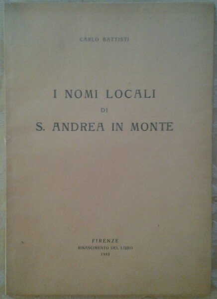Rinascimento del Libro, 1953. In - 8, bross., pp. 107. S. Andrea in Monte e' in provincia di Bolzano. Pagine leggermente ingiallite per la qualita' della carta, peraltro in buono stato