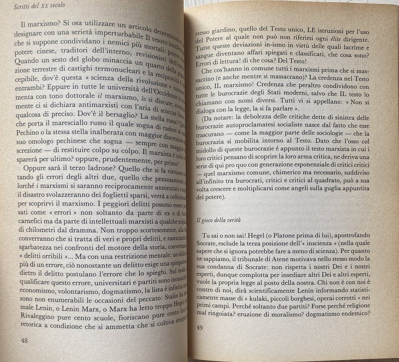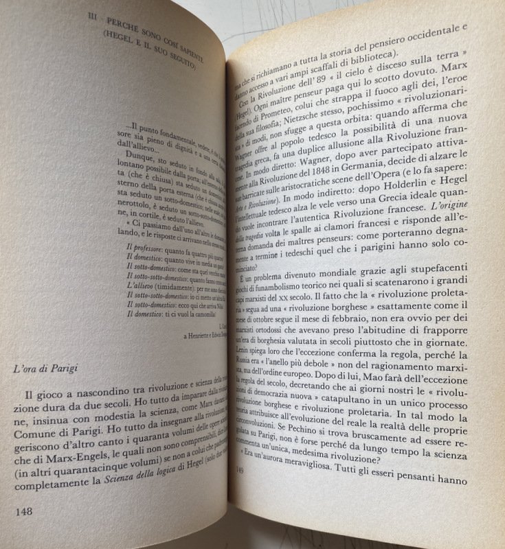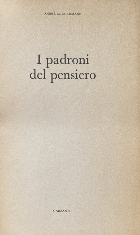 Soggetti: The Master Thinkers, Filosofia, Marxismo, Sinistra, Maestri, Pensiero filosofico, Intellettuali, Francia, Comunismo, Sinistra, Ideologie politiche, Anni Settanta, Lotta politica, Lotta di classe, Movimento operaio, Classe operaia, Unione Sovietica, Russia, Autoritarismo, Democrazia, Rappresentanza, Stato, Teoria, Rivoluzione francese, Libertarismo, Anticomunismo, Antileninismo, Sessantotto, Destra, Liberalismo, Storia contemporanea, Pamphlets, Società, Mentalità borghese, Capitalismo, Marx, Capitale, Proletariato, Popolo, Libertà, Uguaglianza, Diritti civili e sociali, Terrore, Dissenso, Controllo, Violenza, Forza, Istituzioni, Governo, Parlamento, Europa, Apparenza, Autorità, Comune, Parigi, Morte, Egemonia, Élite, Economia, Religione, Chiesa, Secolarizzazione, Johann Gottlieb Fichte, Germania, Idealismo tedesco, Fascismo, Hegel, Sinistra Hegeliana, Conoscenza, Lingua, Linguaggio, Propaganda, Comunicazione, Lavoro, Lenin, Logica, Londra, Masse, Pensatori, Critica, Natura, Nietzsche, Contadini, Plebe, Politica, Possesso, Proprietà privata, Ragione, Socialismo Scientifico, Socrate, Spirito, Universalismo, Purghe staliniane, Stalinismo, Lavoratori, Giacobini, Cartesio, Dominio della terra, Metafisica occidentale, Economia politica inglese, Regime, Ordine, Regna, Re, Sudditi, Obbedienza, Menzogna, Ebrei, Ebraismo, Sterminio, Antisemitismo, Razzismo, Famiglia, Maggio, Rivolta, Giovani americani, America latina, Movimento studentesco, Sessualità, Libertà sessuale, Femminismo, Studenti, Sciopero, Manifesto, Manifestazioni, Università, Scuola, Resistenza, Dittatura, Totalitarismo, Pinochet, Breznev, Controversie, Burocrazia, Bakunin, Protestantesimo, Culturale, Dialettica, Dio, Guerra, Martin Heidegger, Arcipelago Gulag, Leggi, Potere, Matematica, Pacifismo, Panurgo, Pleiade, Programma, Speculazione, Rivoluzione culturale, Cina, Mao-Tse Tung, Primavera, Praga, Ungheria, Strategia, Volontà, Potenza, Nichilismo, Zarathustra, Bernard-Henri Lévy, Saggio filosofici, Consultazione, Riferimento, Bibliografia, Libri Vintage fuori catalogo, Classici, Nouvelle philosophie, Maoismo, Radicalismo, Christian Jambet, Guy Lardreau, Jean-Paul Dollé, Gilles Susong, Albert Camus, Michel Foucault, Illuminismo, Post-strutturalismo, Alain Badiou, Campi di concentramento, Nouvel Observateur, Jacques Lacan, Maurice Clavel, Jambet, François Châtelet, Christian Jambet, Roland Barthes, Philippe Roger, Claude Lévi-Strauss, Diritti umani, Laicismo, Israele, Panurge, Rabelais, Solzenicyn, Sorvegliare e punire, Russell, Bachtin, Platone, Thomas Mann, Isaac Deutscher, McNamara, P. Legendre, Jean-Paul Sartre, Céline, Holderlin, Giudaismo, Ateismo, Panopticon, Althusser, Kant, Lev Trockij, A. Soboul, François Furet, G. Lefebvre, R. Cobb, Hannah Arendt, Michelet, Gargantua, Thelème, Max Weber, Ancien Régime, Psichiatria, Kautsky, Fenomenologia, Marcuse, Mathiez, Robespierre, Guizot, Engels, Wagner, Grecia, Tragedia, Schiavitù, Kerenskij, Napoleone Bonaparte, Hitler, Antigone, Creonte, Jena, Schelling, Mitterand, De Gaulle, Clavel, Marc Bloch, Raymond Aron, Grandi Potenze, Arte, Feticismo, Consumismo, Merce, Produzione, Profitto, Plusvalore, Libero arbitrio, Imperialismo, Colonialismo, Sfruttamento, Terzo Mondo, Intellettuale engagé, Marxisti, Philosophy, Marxism, Left, Masters, Philosophical thought, Intellectuals, France, Communism, Left, Political ideologies, Seventies, Political struggle, Class struggle, Labor movement, Working class, Soviet Union, Authoritarianism, Democracy, Representation, State, Theory, French revolution, Libertarianism, Anti-communism, Anti-Leninism, Sixty-eight, Right wing, Liberalism, Contemporary history, Society, Bourgeois mentality, Capitalism, Proletariat, People, Liberty, Equality, Civil social rights, Terror, Dissent, Control, Violence, Strength, Institutions, Government, Parliament, Europe, Appearance, Authority, Municipality, Paris, Death, Hegemony, Economy, Religion, Church, Secularization, Germany, German idealism, Fascism, Hegelian Left, Knowledge, Language, Communication, Work, London, Masses, Thinkers, Criticism, Nature, Peasants, Plebs, Politics, Possession, Private property, Reason, Scientific Socialism, Socrates, Spirit, Universalism, Purges, Stalinism, Workers, Jacobins, Descartes, Dominion of the earth, Western metaphysics, Economics English politics, Regime, Order, Reign, King, Subjects, Obedience, Lie, Jews, Judaism, Extermination, Anti-Semintism, Racism, Family, May, Revolt, Young Americans, Student movement, Sexuality, Sexual freedom, Feminism, Students , Strike, Manifesto, Demonstrations, University, School, Resistance, Dictatorship, Totalitarianism, Disputes, Bureaucracy, Protestantism, Cultural, Dialectic, God, War, Archipelago, Laws, Power, Mathematics, Program, Speculation, Revolution cultural, China, Spring, Prague, Hungary, Strategy, Will, Power, Nihilism, Philosophical essays, Consultation, Reference, Bibliography, Out of print books, Classics, Radicalism, Enlightenment, Post-structuralism, Concentration camps, Human Rights, Secularism, Israel, Discipline and Punish, Plato, Judaism, Atheism, Psychiatry, Phenomenology, Greece, Tragedy, Slavery, Great Powers, Fetishism, Consumerism, Commodity, Production, Profit, Surplus Value, Free Will, Imperialism, Colonialism, Exploitation, Third World, Intellectual Engagé, Marxists