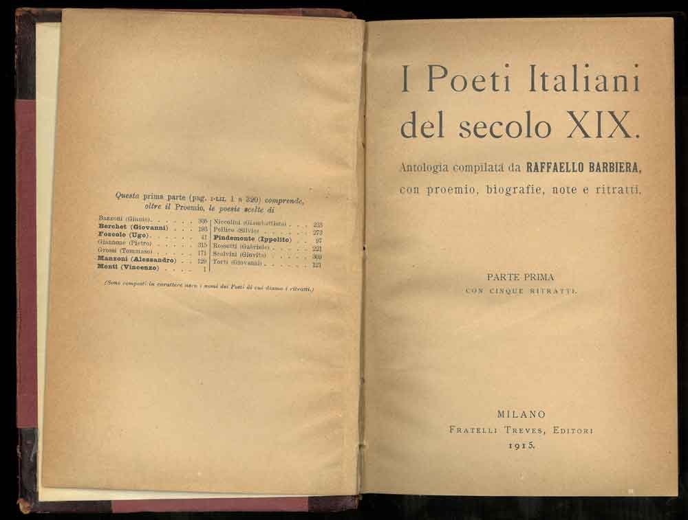 I poeti italiani del secolo XIX. Parte prima.