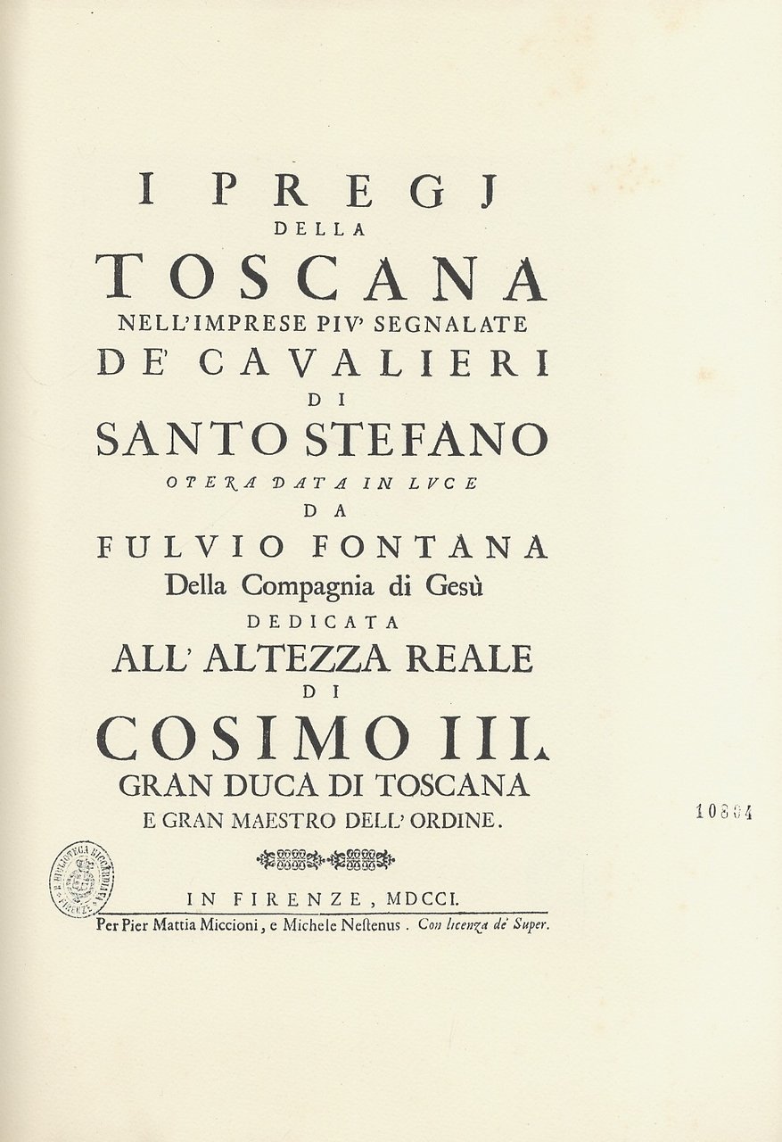 I Pregi della Toscana nell'imprese più segnalate de' Cavalieri di Santo Stefano.