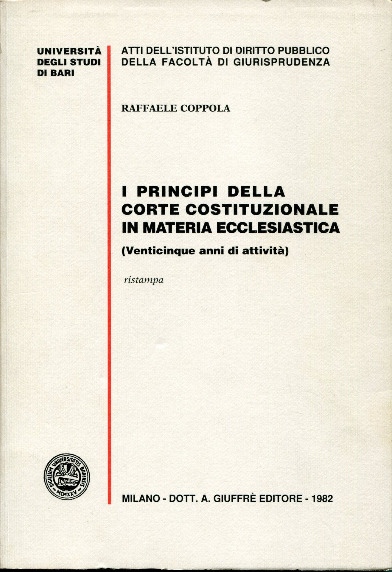 I principi della Corte costituzionale in materia ecclesiastica : venticinque anni di attività | Libri antichi e moderni | Coppola, Raffaele, ,Coppola, Raffaele