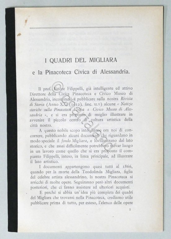 I quadri del Migliara e la Pinacoteca Civica di Alessandria - 1916 ca.