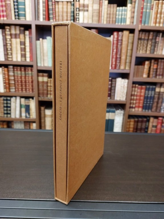 In-4° (cm. 30), carte non numerate, in barbe. Brossura officinale a risvolti, titolo in azzurro al piatto e al dorso, camicia e astuccio uso tela in colore nocciola. Edizione di 300 esemplari in carattere Garamond (il nostro n. 278). Cfr. Pellizzari 80. Ottimo esemplare.