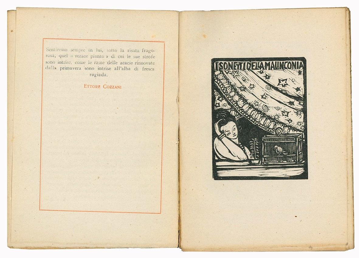 In 16 (mm 175x125); pp.57, [2]. N.5 della collana "I gioielli del L'Eroica". Frontespizio entro cornice. Fregi capilettera e illustrazioni xilografiche di Francesco Gamba. Prefazione di Ettore Cozzani. Alcune carte lievemente brunite. Tela colorata con titolo applicato su tasselli cartacei al piatto anteriore. Mancano copertine originali. Un po' sciolto.