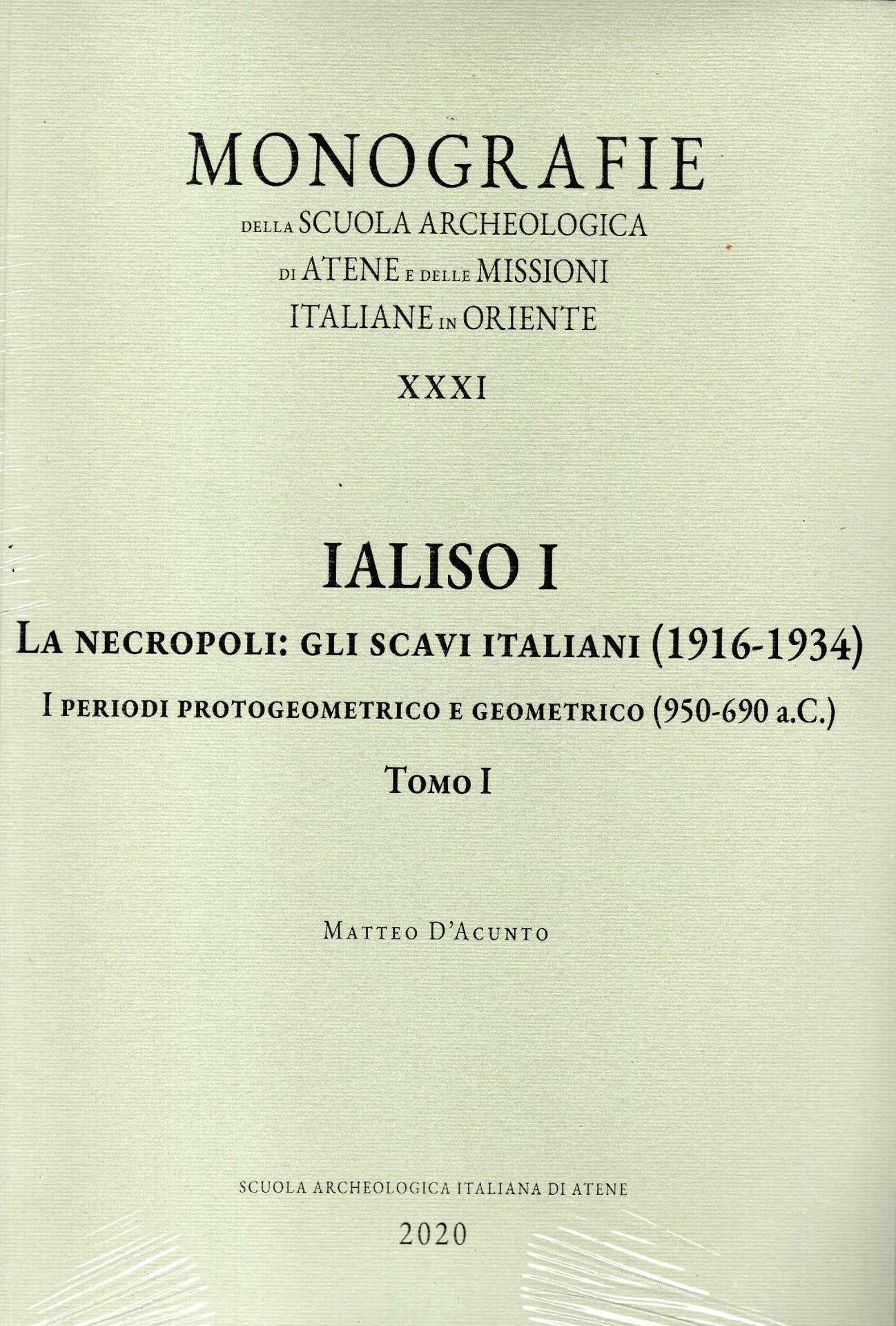 IALISO I. La necropoli: gli scavi italiani (1916-1934). I periodi protogeometrico e geometrico (950-690 a.C.) ? Tomo I | Libri antichi e moderni | Matteo D''Acunto, ,Matteo D''Acunto