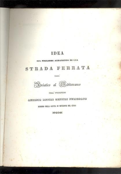 IDEA SUL MIGLIORE ANDAMENTO DI UNA STRADA FERRATA DALL'ADRIATICO AL MEDITERRANEO DELL'INGEGNERE ANTONIO RUTILI GENTILI FULIGNATE MEMBRO DELLA GIUNTA DI REVISIONE DEL CENSO