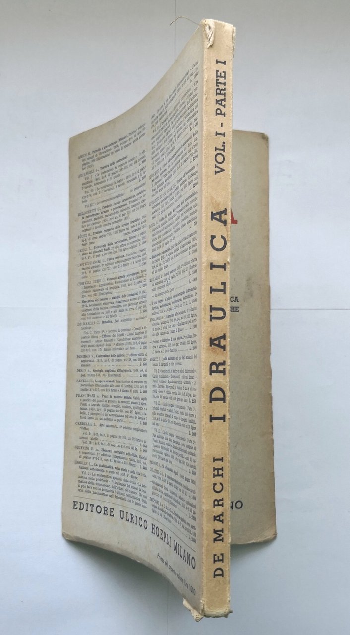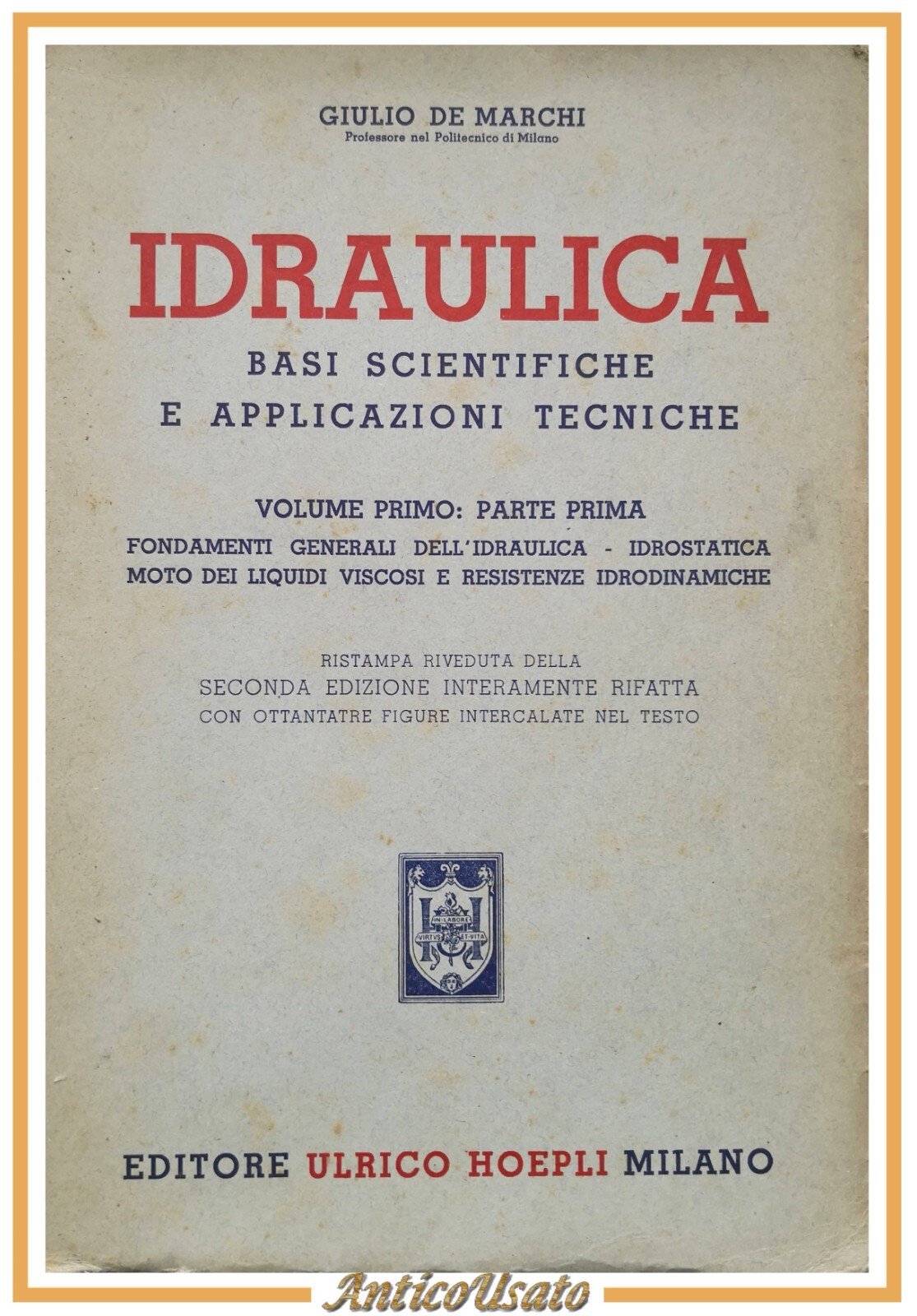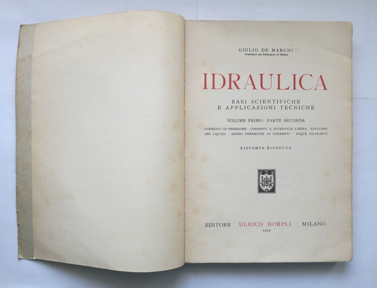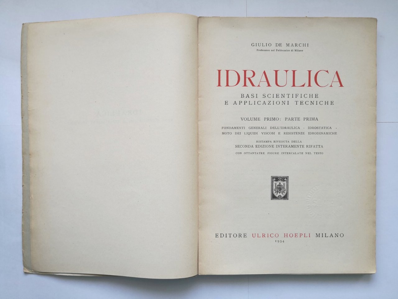 IDRAULICA di Giulio De Marchi Volume I parte 1 e 2 1954 1955 Hoepli Libro Manual