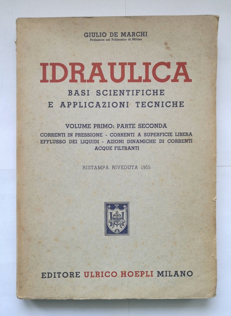 IDRAULICA di Giulio De Marchi. Basi scientifiche e applicazioni tecniche. Volume I, parte 1 e 2.