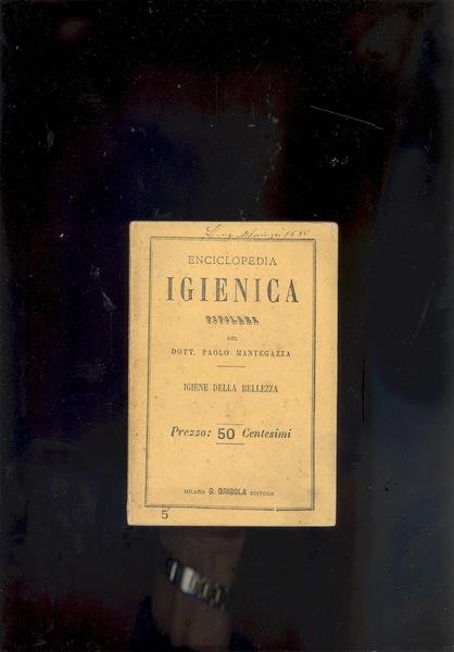 IN 16, pp.152, COPERTINA EDITORIALE CON TITOLO ENTRO CORNICE. IGIENE DELLA BELLEZZA DEL DOTT. PAOLO MANTEGAZZA, FACENTE PARTE DELLA ENCICLOPEDIA IGIENICA POPOLARE. DORSO ALLENTATO, VECCHIA FIRMA ALLA 1° DI COPERTINA IN ALTO, <BR> INTERNO OTTIMO. ID 3974