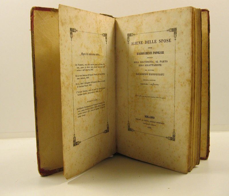 Igiene delle spose ossia ragionamenti popolari intorno alla gravidanza, al parto alla allattazione del Dottor Lorenzo Ercoliani. Seconda edizione accresciuta e migliorata