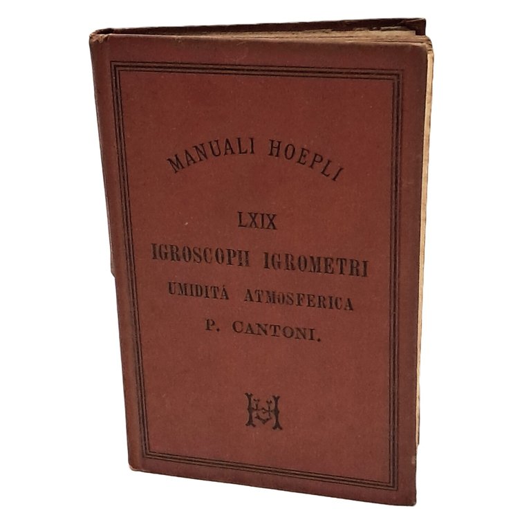 PRIMA EDIZIONE Manuale per la conoscenza del grado di umidità dell'aria da utilizzare per la zoologia e fitografia tramite l'uso di strumenti indicatori e misuratori. Cartonato con 24 incisioni e 7 specchi grafici. Pp. XII+146. Fioriture, un piccolo taglio sul dorso.