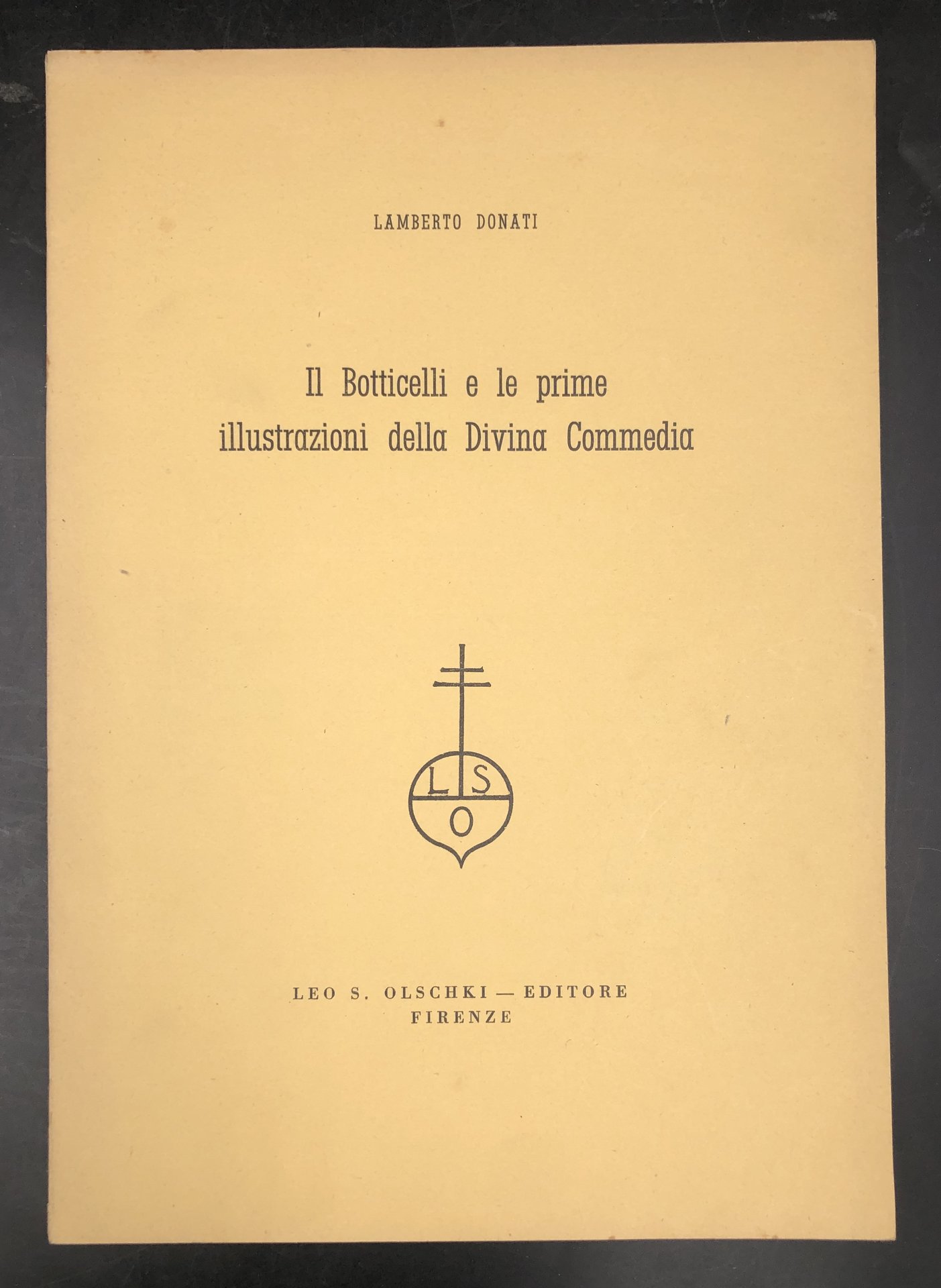 In-4° (cm.29x20,5), pp. 85 con 58 riproduzioni in b.n. di XILOGRAFIE o di antiche incisioni di incunaboli della Commedia, non solo del Botticelli, ma di molti altri illustratori e incisori del Quattrocento o del primissimo Cinquecento. Brossura editoriale. DONATI, bibliografo e critico, scrisse molte opere sui codici miniati o su libri xilografati medievali, fino al Quattrocento.