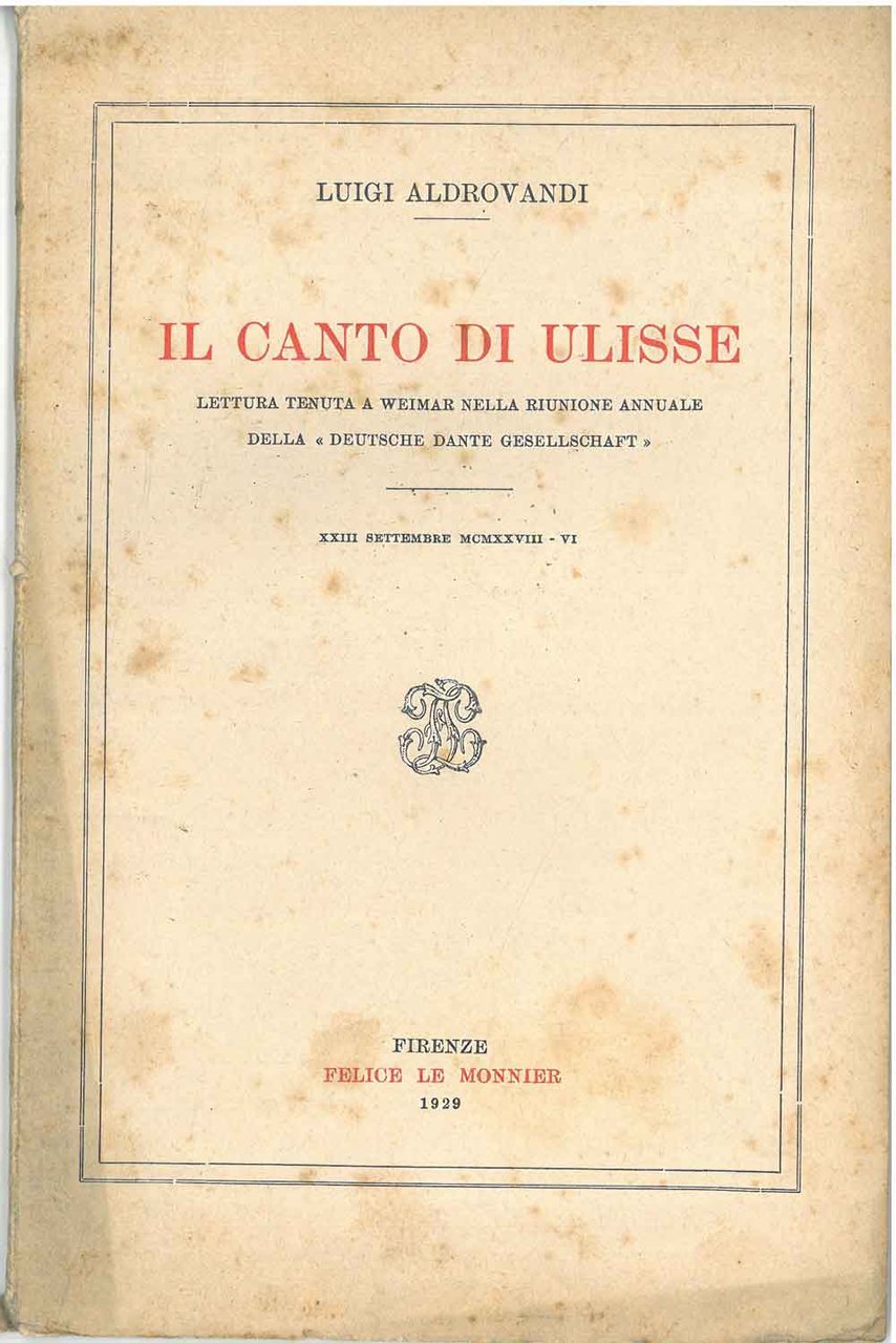 Il canto di Ulisse. Lettura tenuta a Weimar nella Riunione annuale della "Deutsche Dante Gesellshaft", 23 settembre 1928-VI