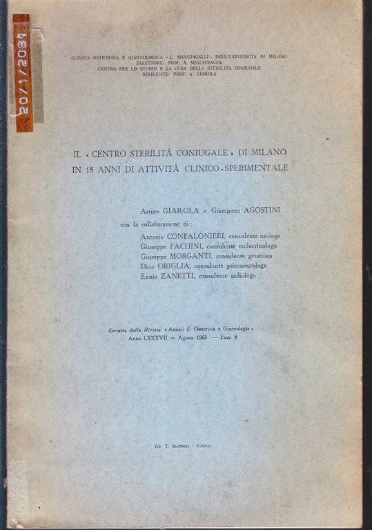 Il "Centro sterilità coniugale" di Milano in 18 anni di attività clinico-sperimentale