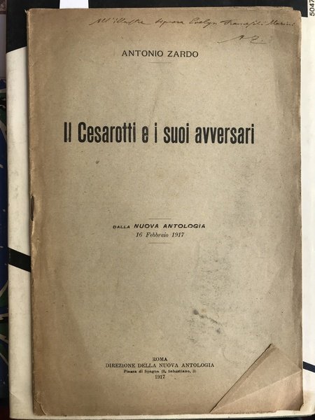 Il Cesarotti e i suoi avversari. Dalla Nuova Antologia 16 Febbraio 1917