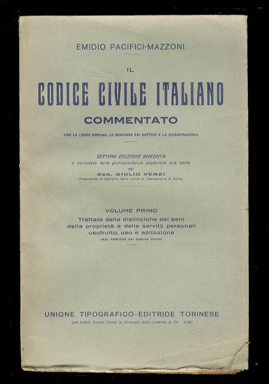 Il Codice civile italiano commentato con la legge romana, le sentenze dei dottori e la giurisprudenza. Volume I - XV. VI, VII e VIII edizione.