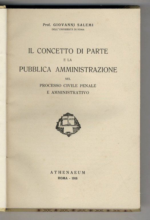 Roma, Athenaeum, 1916, in-8, legatura moderna in mezza tela, tassello con iscrizioni in oro al dorso, pp. 328. Ottimo esemplare.