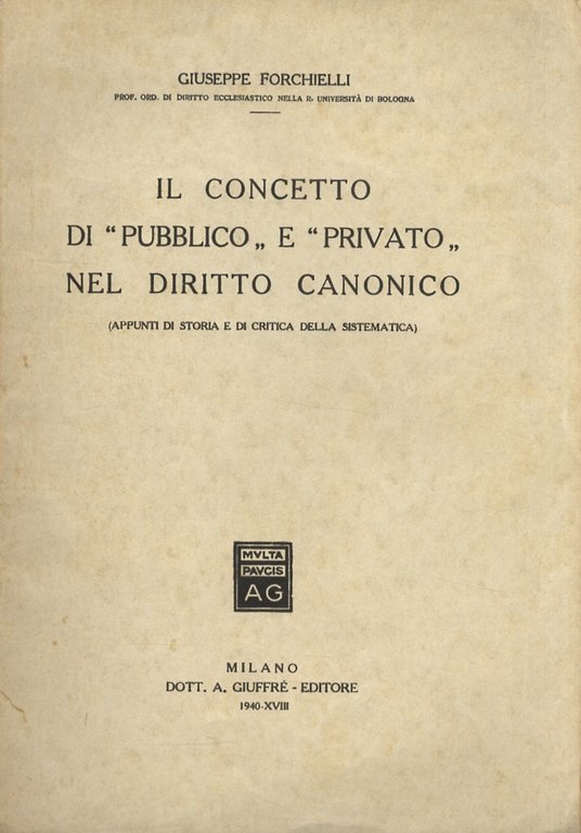 Il concetto di “pubblico” e “privato” nel diritto canonico. (Appunti di storia e di critica della sistematica).