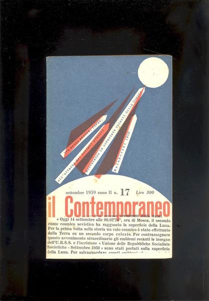 IN 8° ( cm.21 X 13 ), pp.143, COPERTINA EDITORIALE ILLUSTRATA A COLORI CON TITOLO.<BR>IL CONTEMPORANEO, RIVISTA POLITICO - CULTURALE A CADENZA MENSILE, n° 17, ANNO II,<BR>SETTEMBRE 1959. DIRETTORE RESPONSABILE: ANTONELLO TROMBADORI. MOLTO INTERESSANTE IL SECONDO ARTICOLO DI ANNABELLA ROSSI, SUL PRIMITIVO NELLA SCULTURA CONTEMPORANEA CON NUMEROSE TAVV. f.t. in b/n. OTTIMA CONSERVAZIONE.<BR>ID 1823