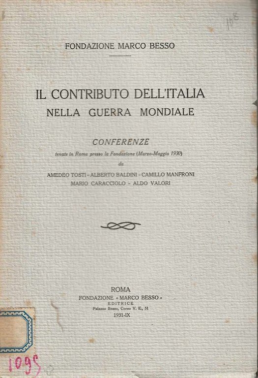Il contributo dell'Itlaia nella guerra mondiale. Conferenze tenute a Roma presso la Fondazione (Marzo-Maggio 1930).