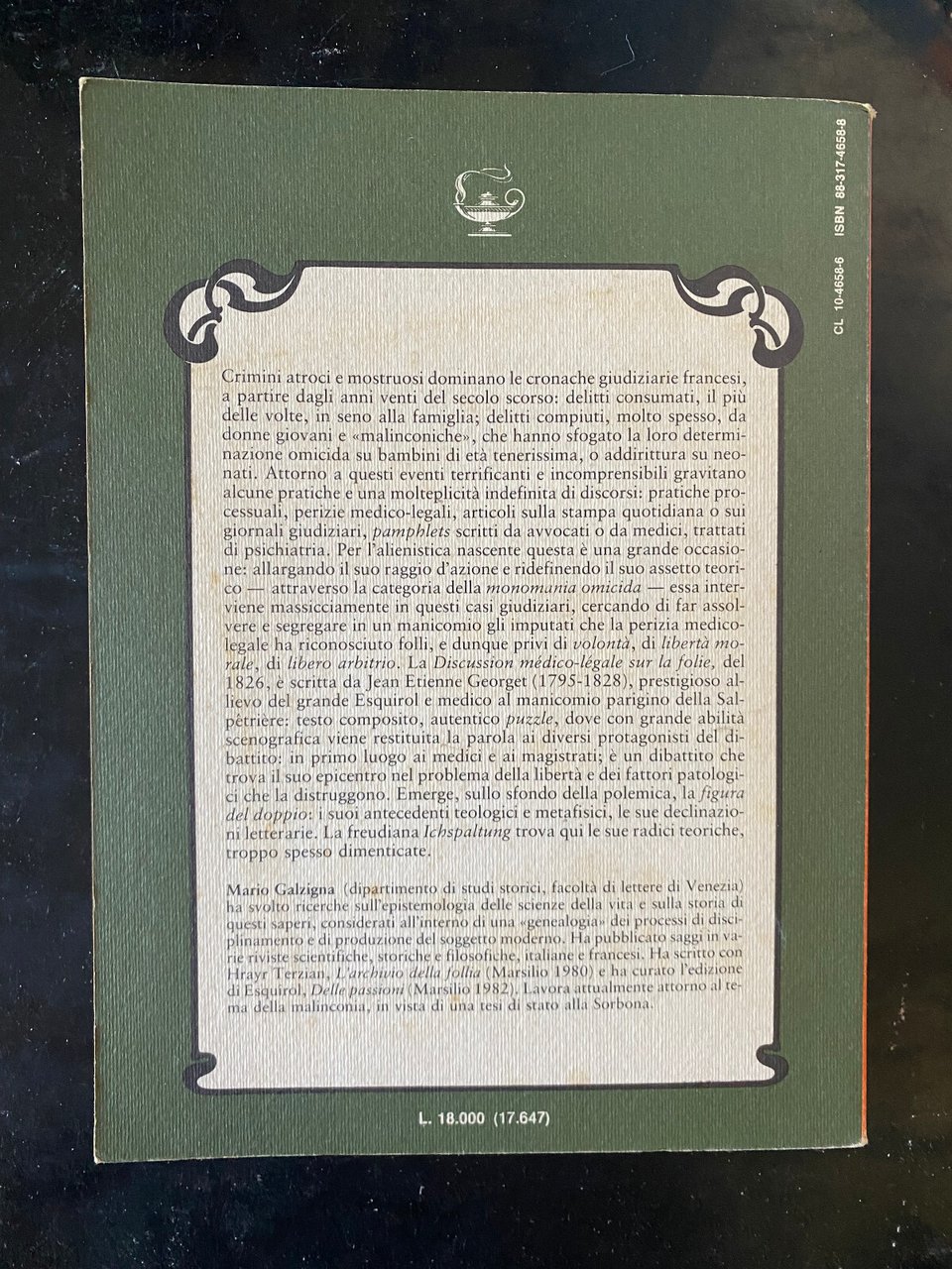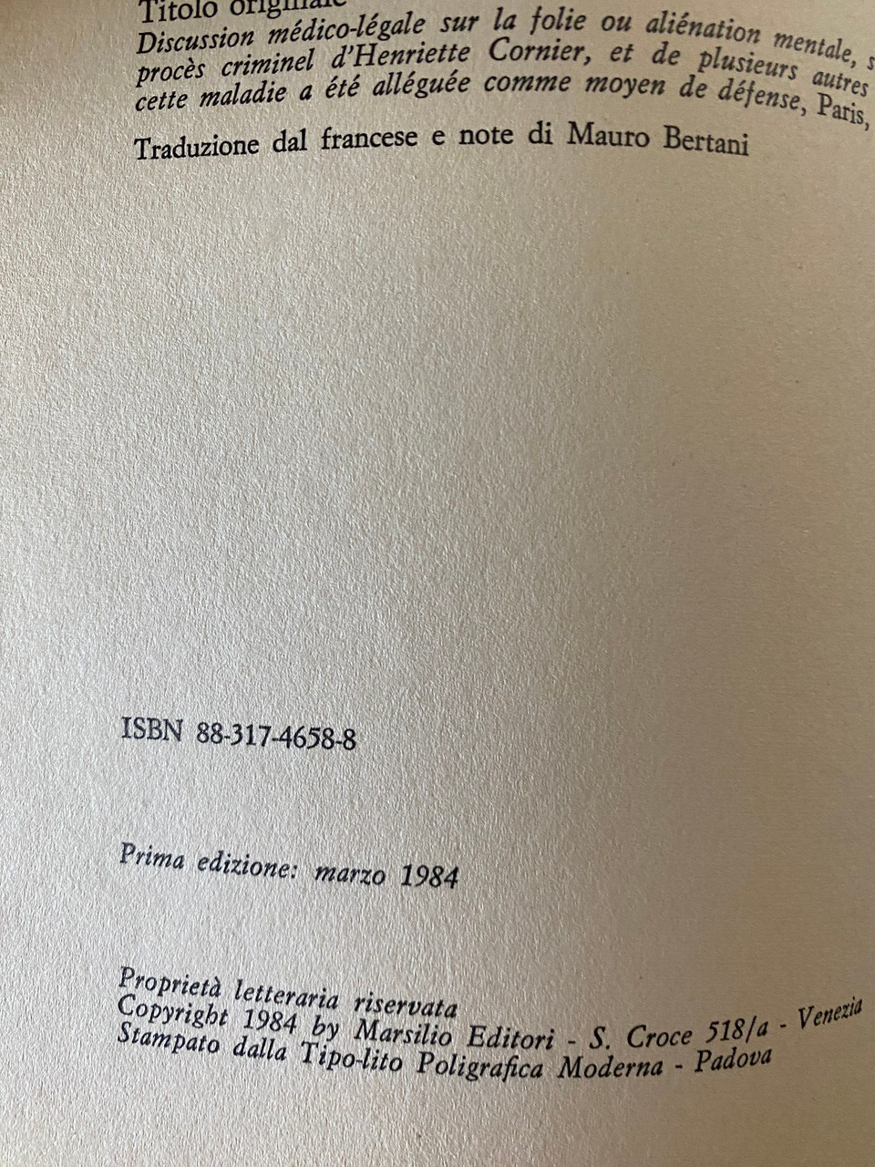 Il crimine e la colpa. Discussione sulla follia, E. J. Georget, Marsilio, 1984 | Libri antichi e moderni |