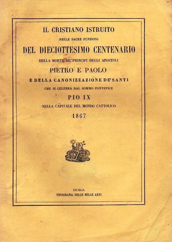 Il Cristiano istruito nelle sacre funzioni del dieciottesimo centenario della morte de' principi degli apostoli Pietro e Paolo e della canonizzazione de' santi che si celebra dal sommo pontefice Pio IX nella capitale del mondo cattolico .